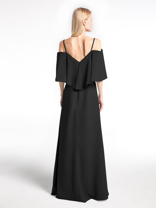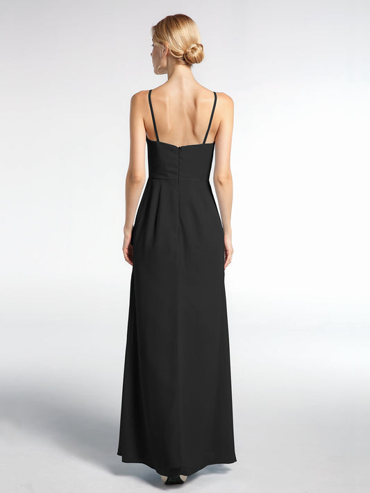 Babaroni NatalieVestido maxi simple de chiffon con escote en V y tirantes finos Negro