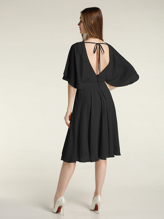 Babaroni SelenaVestidos cortos de chiffon con escote tipo scoop y mangas de volantes Negro