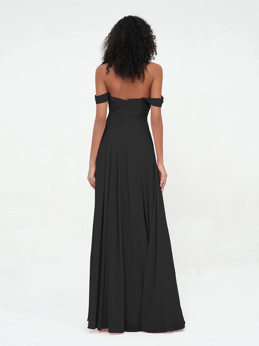 Babaroni BridgetVestidos largos de terciopelo con hombros descubiertos y mangas largas Negro