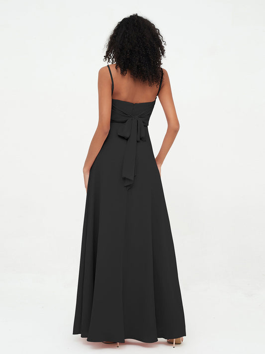 Babaroni AmyVestidos largos de dama de honor de chiffon con tirantes de cuello halter Negro