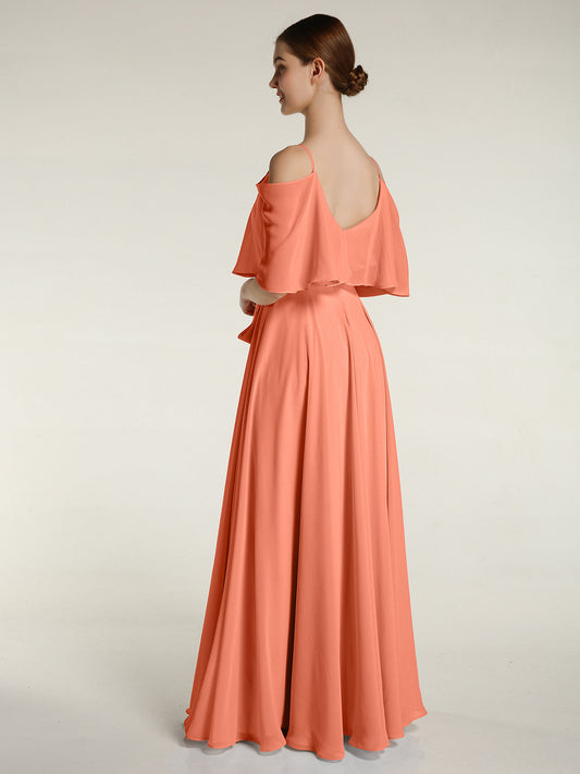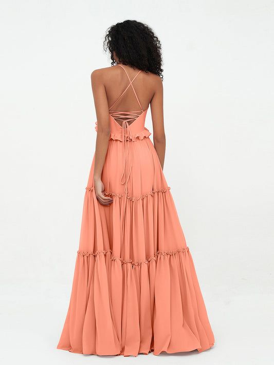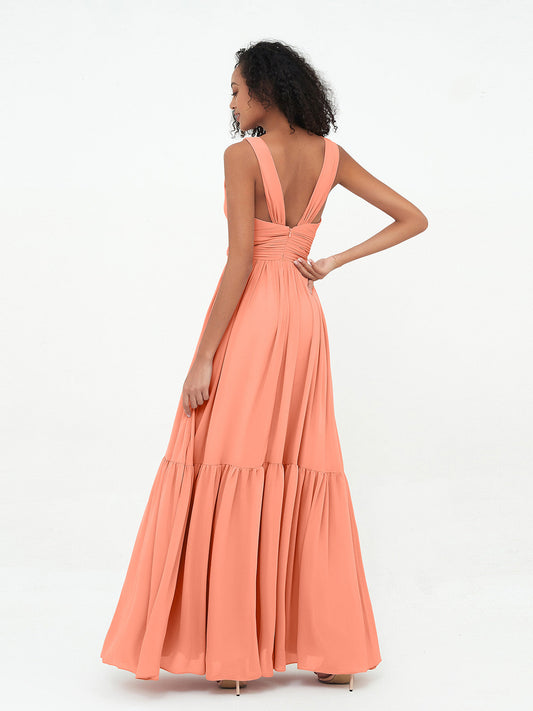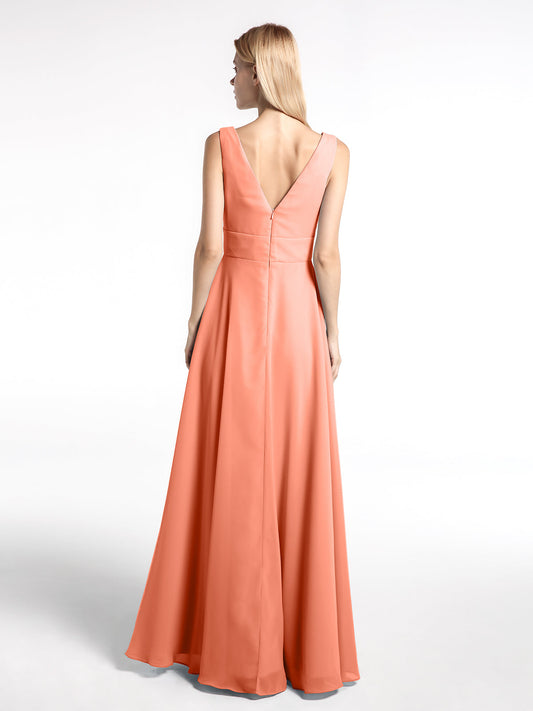 Vestidos largos de chiffon con escote en V y espalda abierta Atardecer