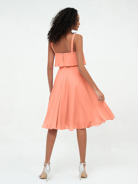 Vestidos cortos de chiffon con tirantes para la dama de honor con falda redonda Atardecer