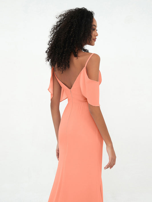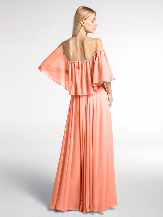 Vestidos máximos de chiffon con falda escalonada estilo off shoulder Atardecer