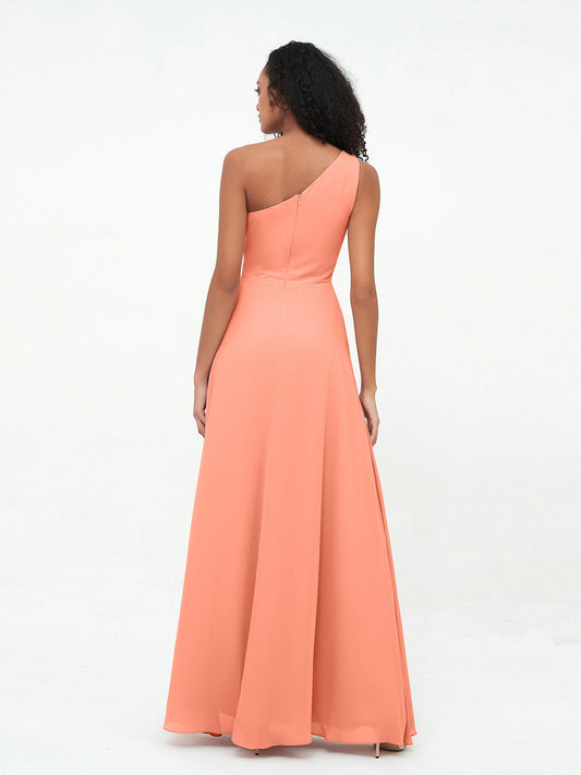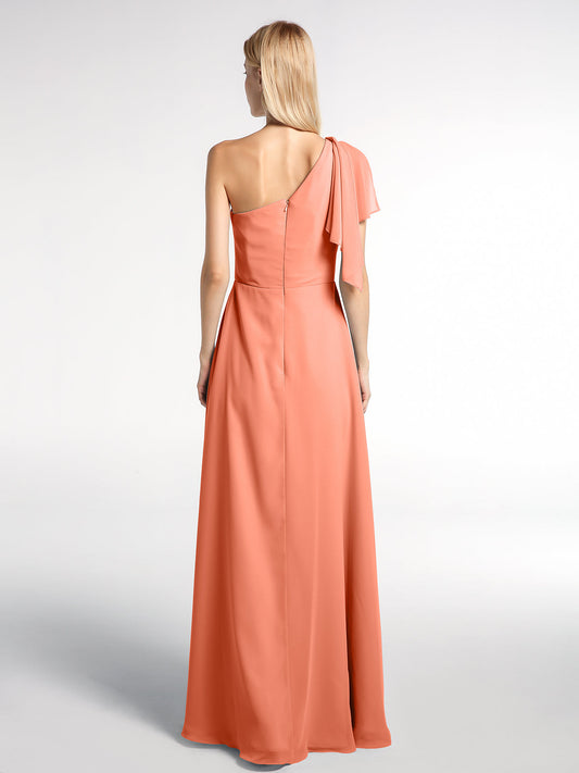 Vestidos máximos de chiffon de un solo hombro con abertura Atardecer