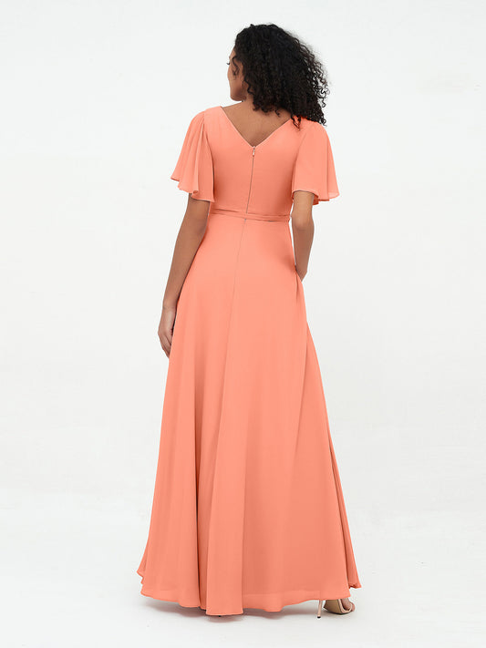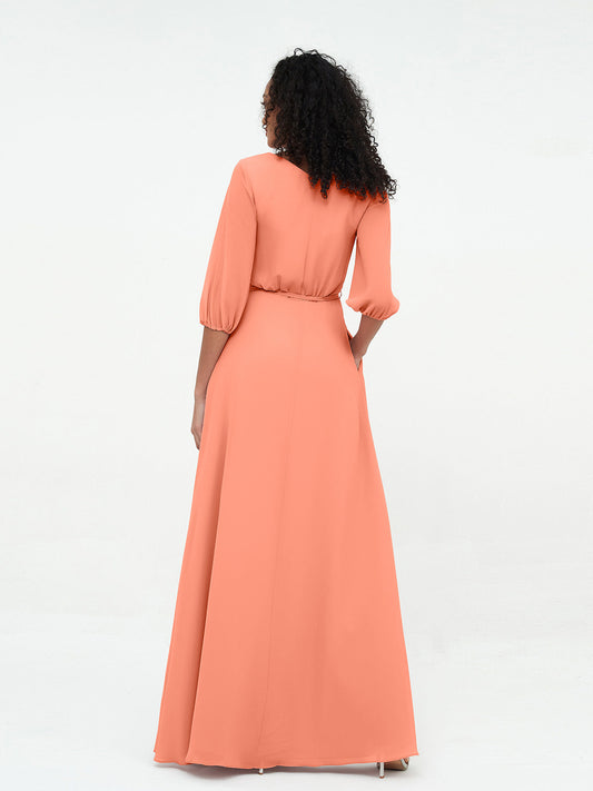 Vestidos máximos de chiffon con escote en V profundo y mangas 1/2 Atardecer