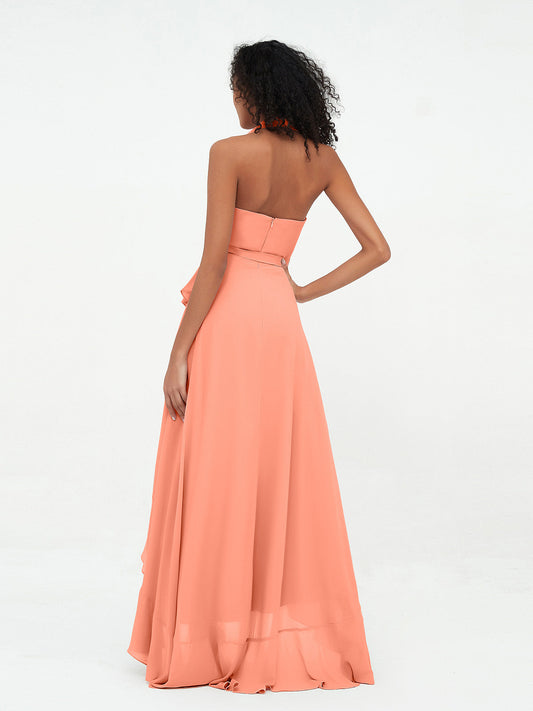 Vestidos largos de chiffon sin tirantes y escote corazón Atardecer