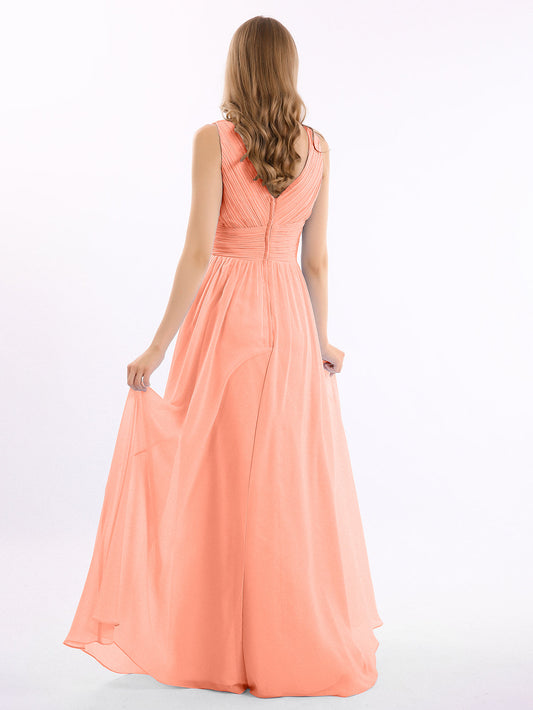 Babaroni GailVestidos largos de chiffon con escote en V hasta el suelo Atardecer