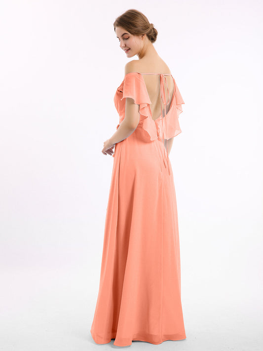 Babaroni NicoleVestidos largos de dama de honor de chiffon sin tirantes Atardecer