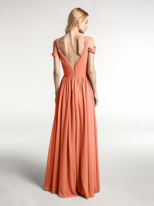 Babaroni DanaVestidos largos de chiffon con escote en V y espalda abierta Atardecer