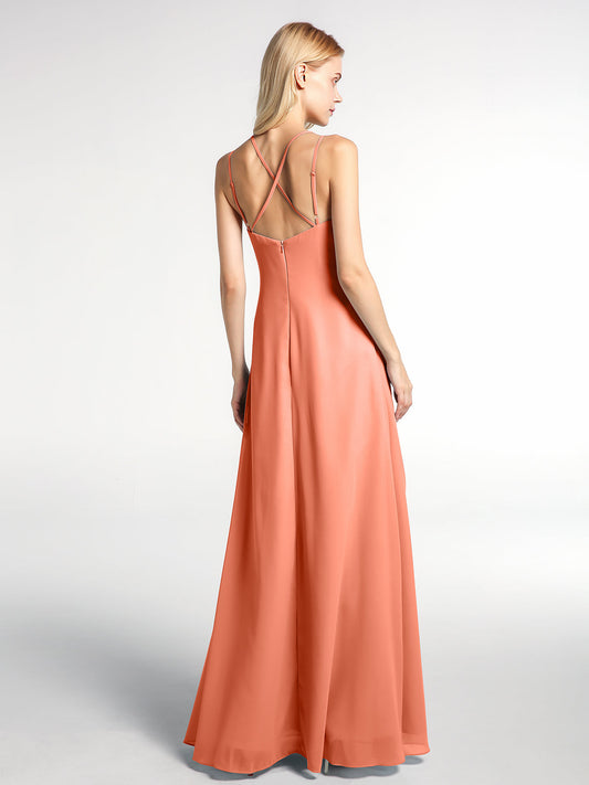Babaroni AstridVestido elegante de dama de honor con tirantes finos y escote en V Atardecer