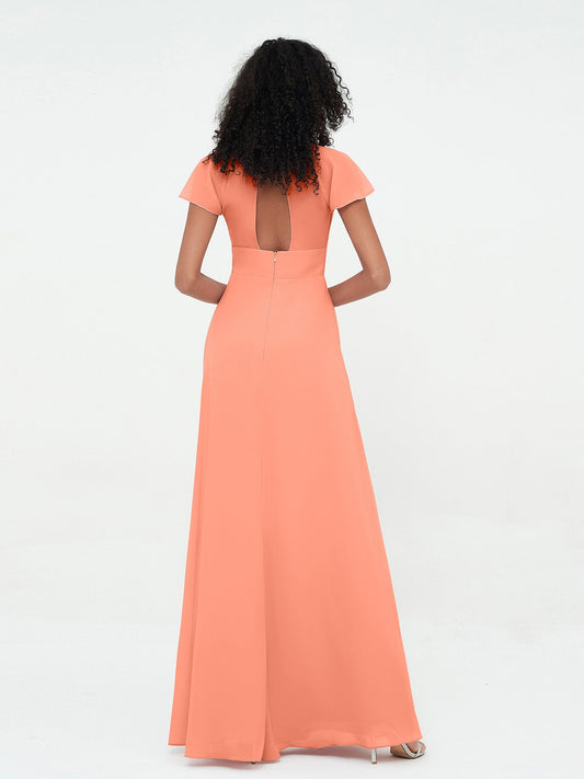 Babaroni SibylVestido largo de chiffon sencillo con escote en forma de muesca Atardecer