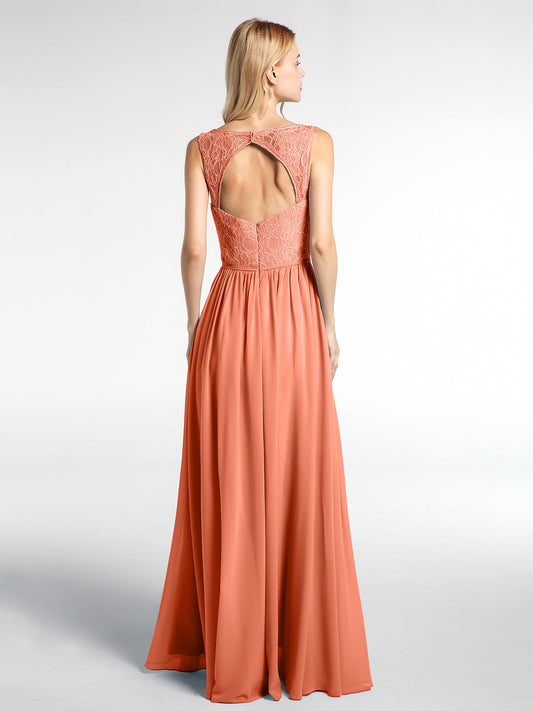 Babaroni HilaryVestido maxi de chiffon con escote en V y parte superior de encaje Atardecer