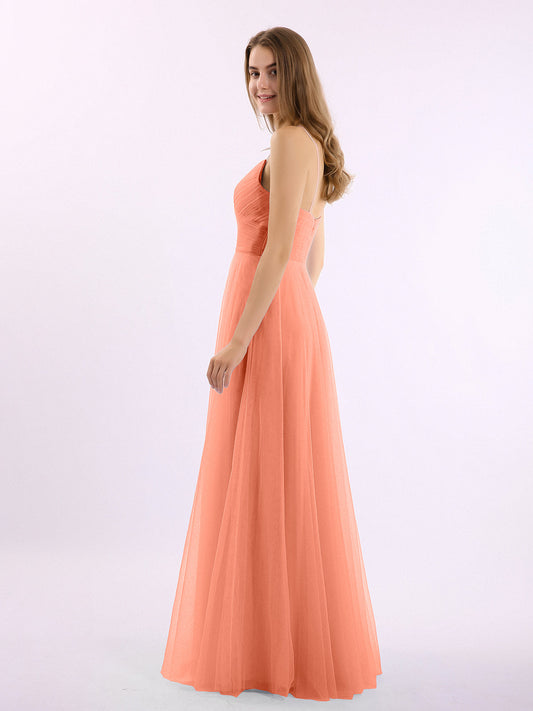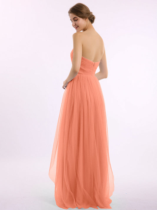 Babaroni ViolaVestidos largos de dama de honor sin tirantes con escote en corazón y falda de tul Atardecer
