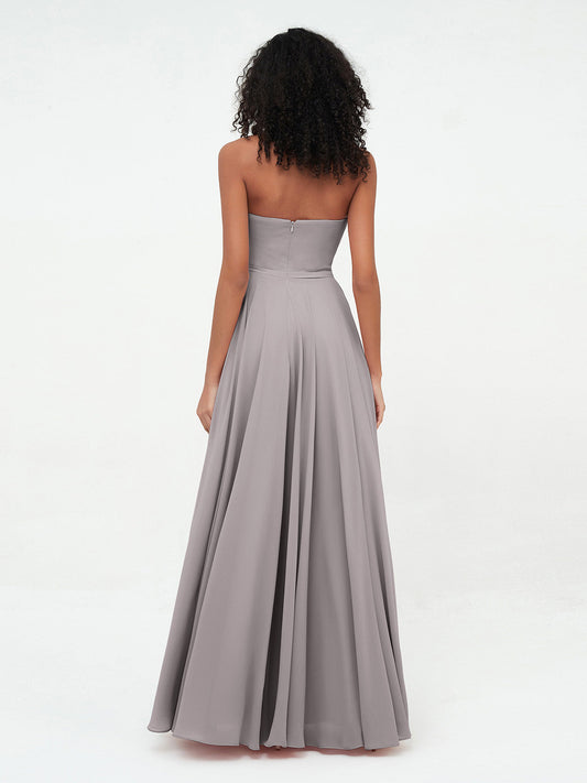 Babaroni YvonneVestidos largos de chiffon sin tirantes y escote corazón Plata