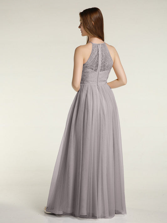 Babaroni TinaVestidos largos con cuerpo de encaje y falda de tul Plata