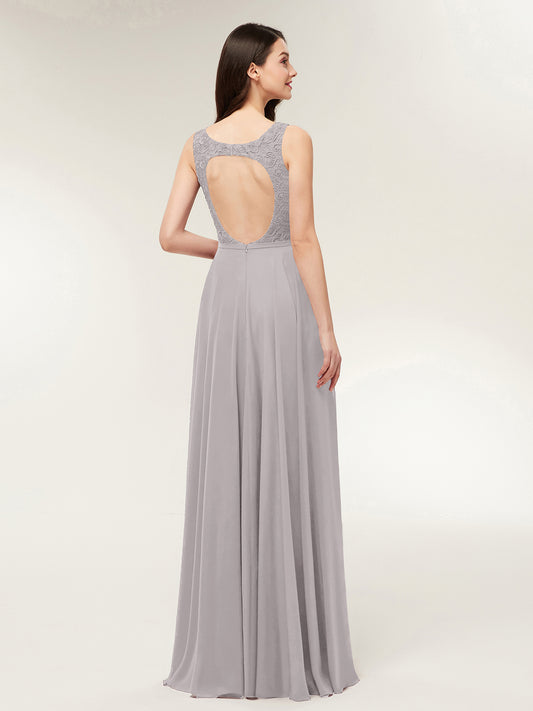 Babaroni AdalynAdalyn Escote En V Gasa Y Encaje Maxi Corte De Dama De Honor Plata