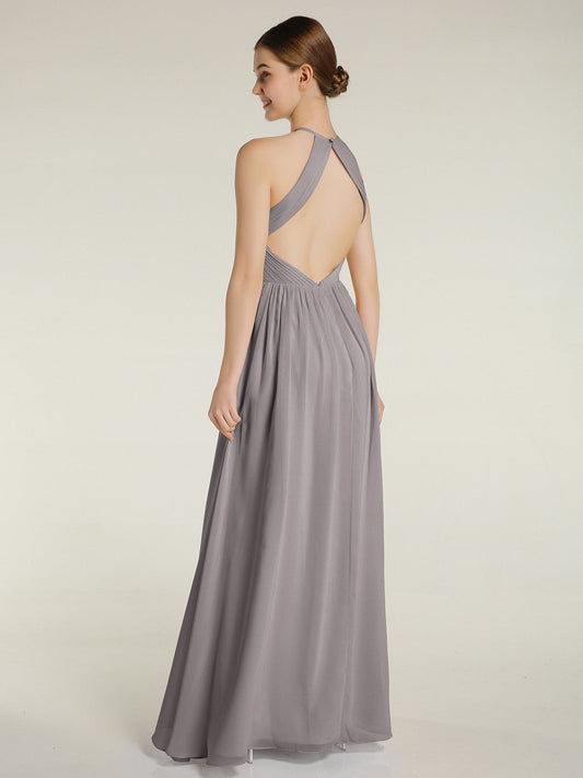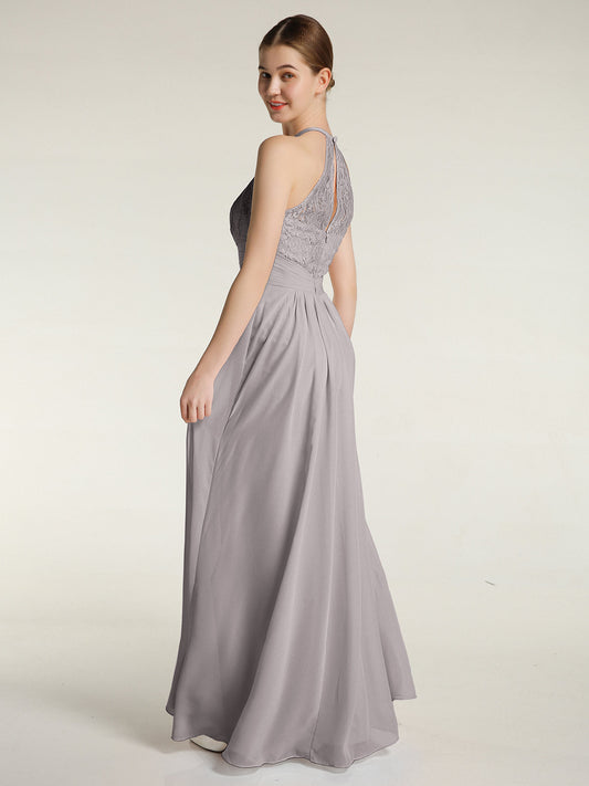 Babaroni AmandaVestidos largos de chiffon y encaje estilo halter Plata