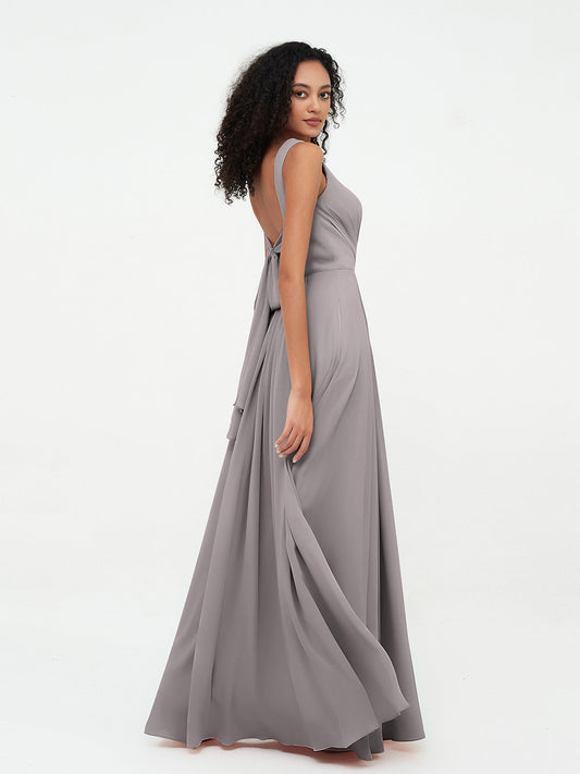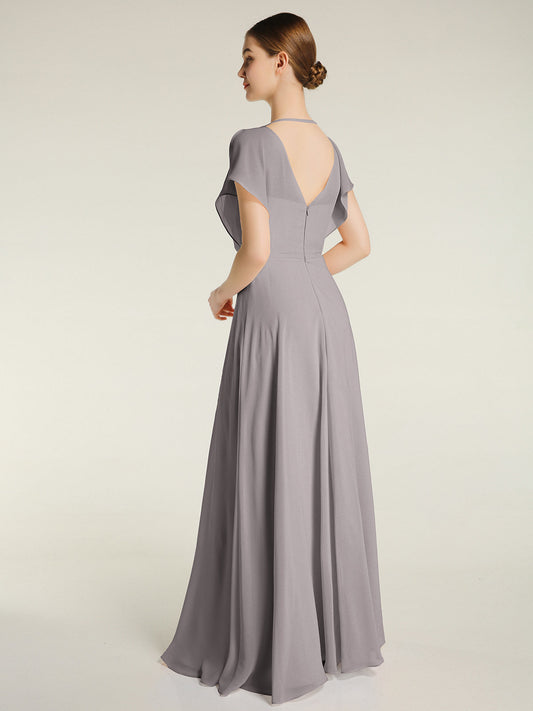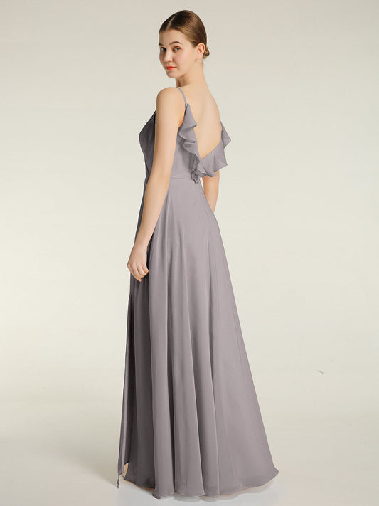 Babaroni VitaVestido de dama de honor de chiffon con escote en V y espalda descubierta Plata