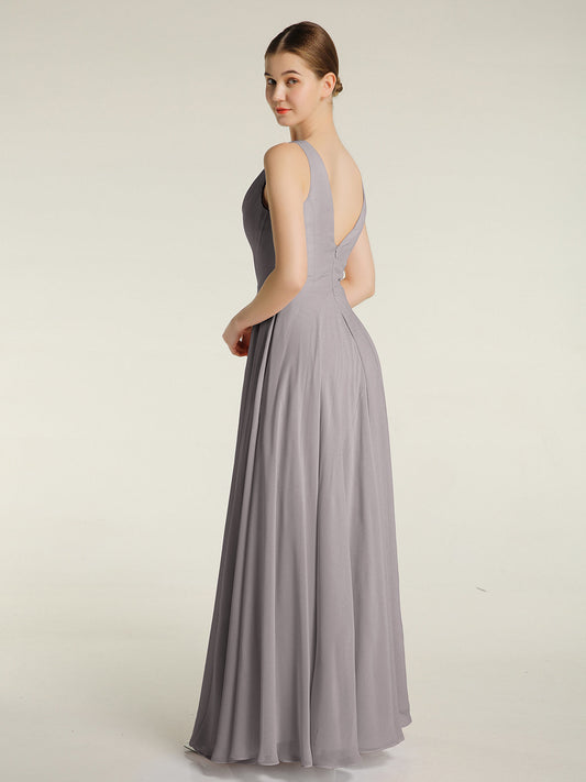Babaroni CarolVestidos sencillos de chiffon con escote en V Plata