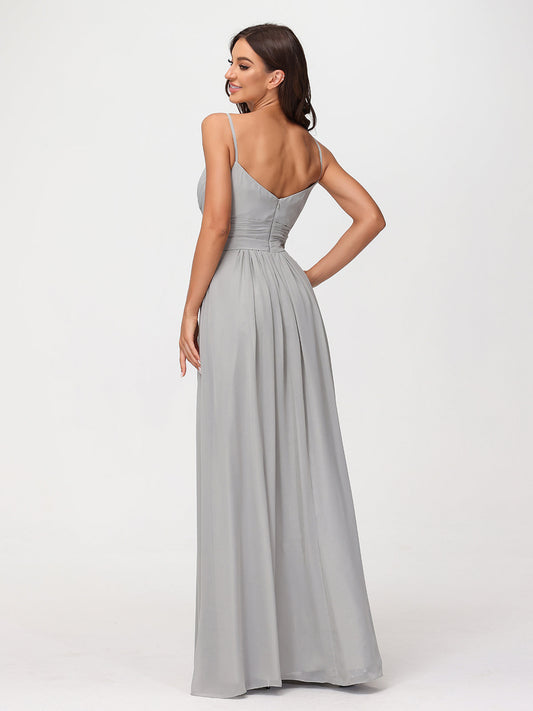 Babaroni TammyVestidos de chiffon con tirantes finos y escote en V Plata