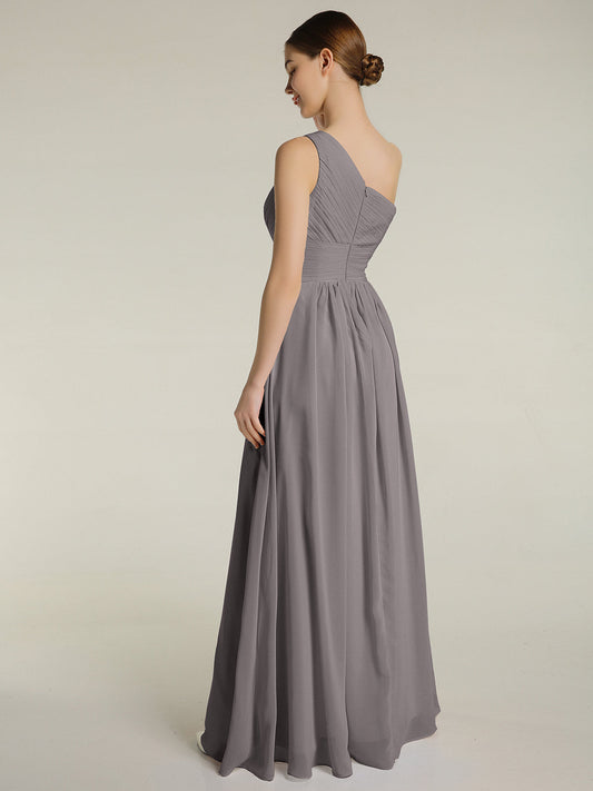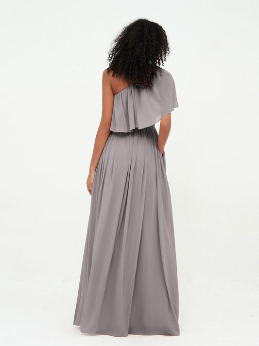 Babaroni MildredVestidos largos de chiffon de un hombro con bolsillos Plata