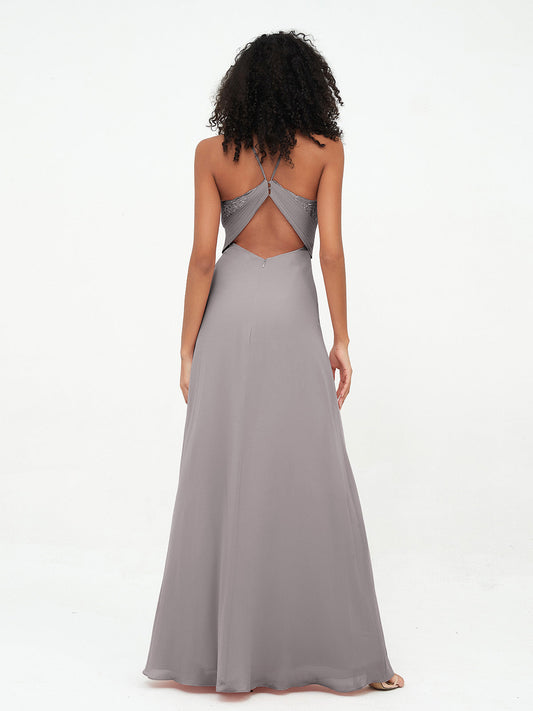 Babaroni FrancesVestidos de halter con top de encaje y espalda descubierta de gasa Plata