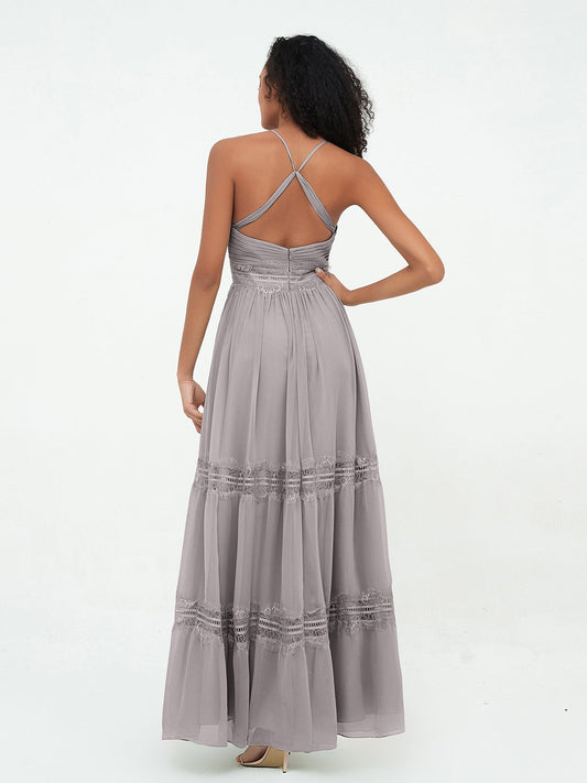 Babaroni HilaryVestido maxi de chiffon con escote en V y parte superior de encaje Plata