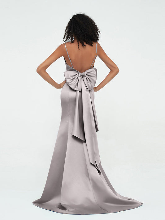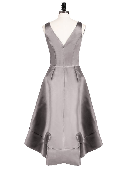 Babaroni HannahHannah Escote En V Saten Alto Bajo Vestidos De Dama De Honor Plata
