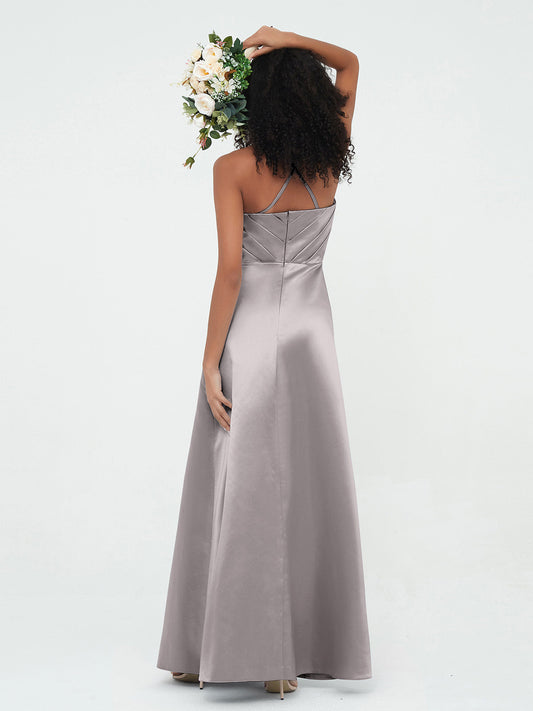 Babaroni TrudaVestidos máximos de satén estilo A-line con cuello halter y bolsillos Plata