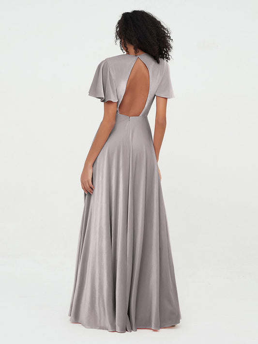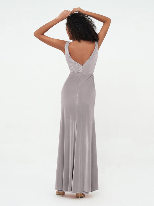 Babaroni CharlotteVestidos máximos de terciopelo estilo sirena con escote en V Plata