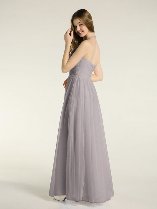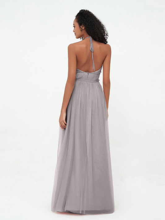 Vestidos de tul con espalda convertible y largo hasta el suelo Plata