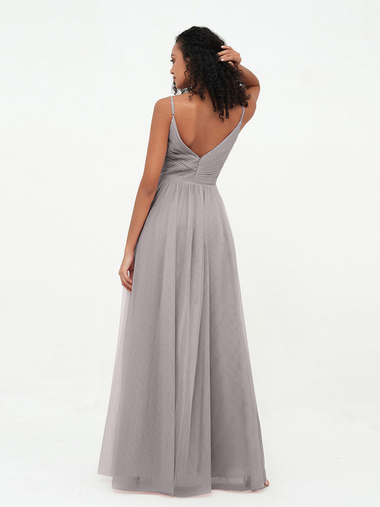 Vestidos largos de tul con escote en V ilusión Plata