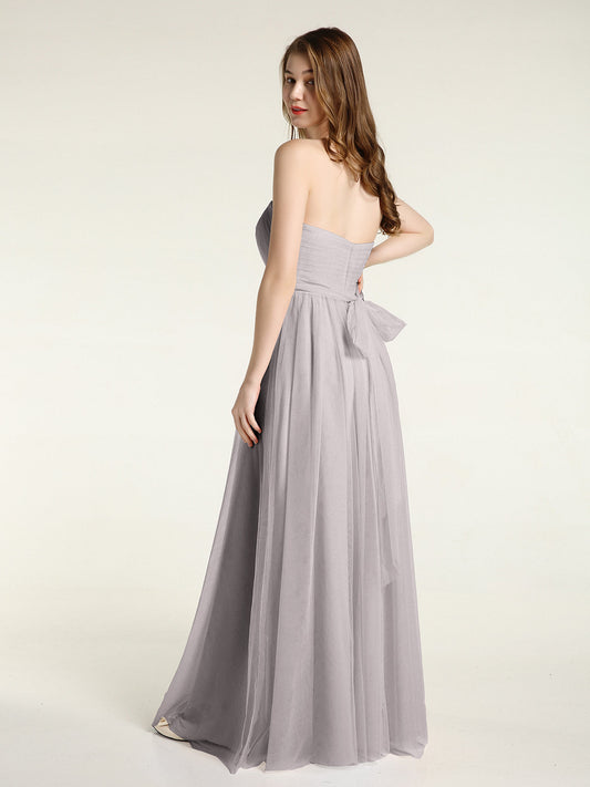 Vestidos de tul sin tirantes con escote en corazón y lazo Plata