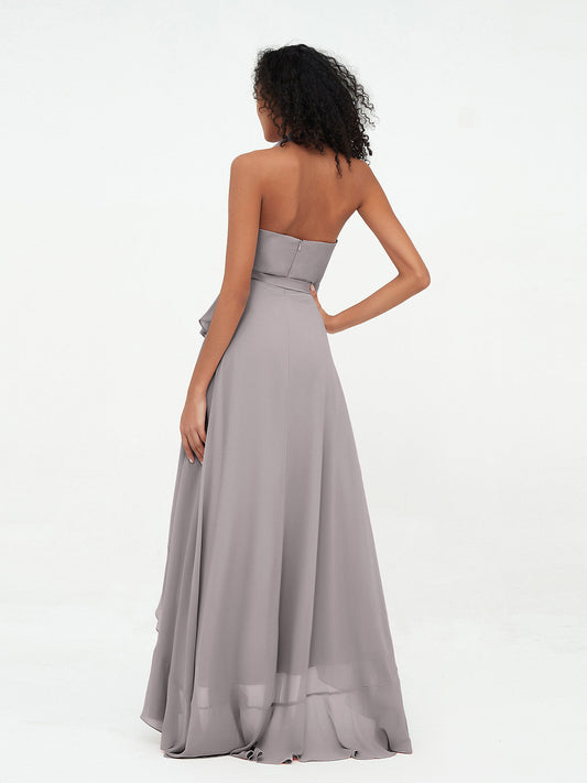 Babaroni HannahHannah Escote En V Saten Alto Bajo Vestidos De Dama De Honor Plata