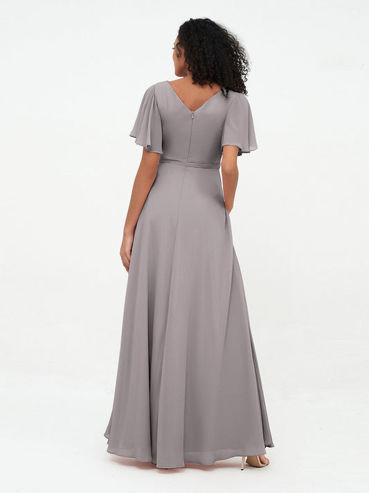 Babaroni YvetteVestidos máximos de chiffon con mangas de volantes y lazo en la cintura Plata