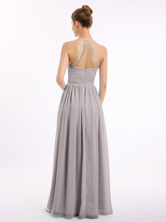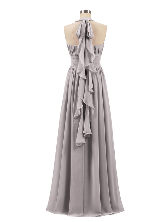 Fanny Cabestro Largo Gasa Vestido De Dama De Honor Plata