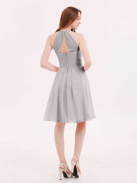 Natividad Cabestro Escote En V Gasa Corto Vestidos De Dama De Honor Plata