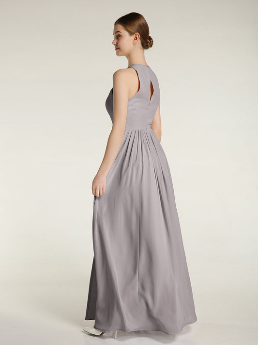 Vestido sencillo de chiffon estilo halter con abertura Plata