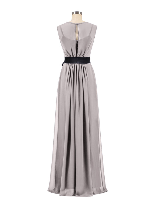 Vestidos largos de chiffon estilo princesa con abertura Plata