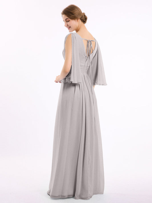 Babaroni NellyVestidos de chiffon con escote en V profundo y abertura Plata