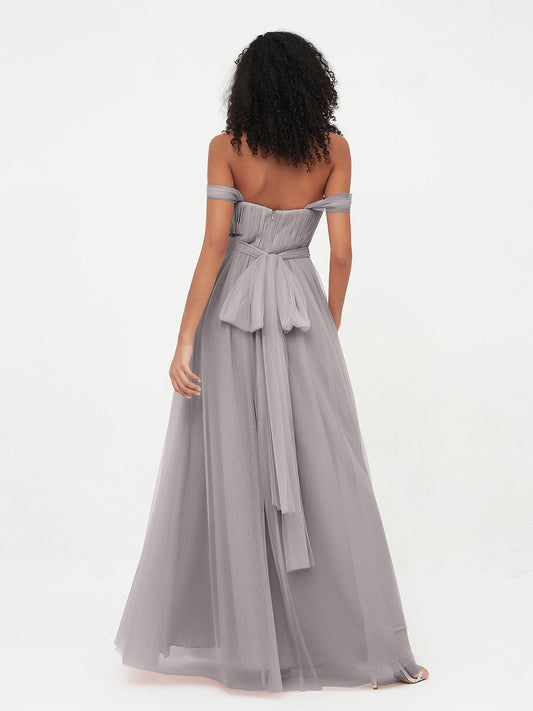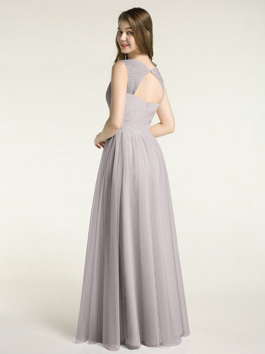Babaroni EvelynVestidos de tul con espalda convertible y largo hasta el suelo Plata
