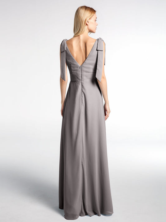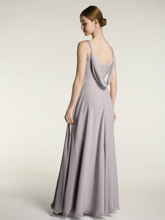 Babaroni VitaVestido de dama de honor de chiffon con escote en V y espalda descubierta Plata