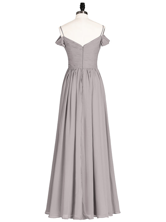 Babaroni PrudencePrudence Un Hombro Gasa Largo Cortes De Dama De Honor Plata