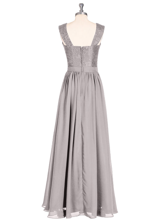 Babaroni VivienVivien Hombro Tirante Encaje Y Gasa Largo Vestido Plata