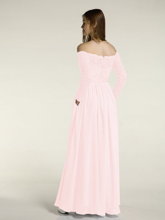 Babaroni MeilaniVestidos de encaje y chiffon con mangas largas y bolsillos Rosa Claro