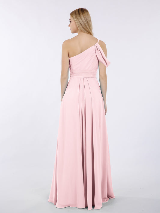 Babaroni PrudencePrudence Un Hombro Gasa Largo Cortes De Dama De Honor Rosa Claro