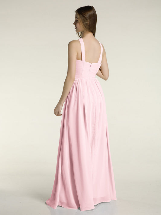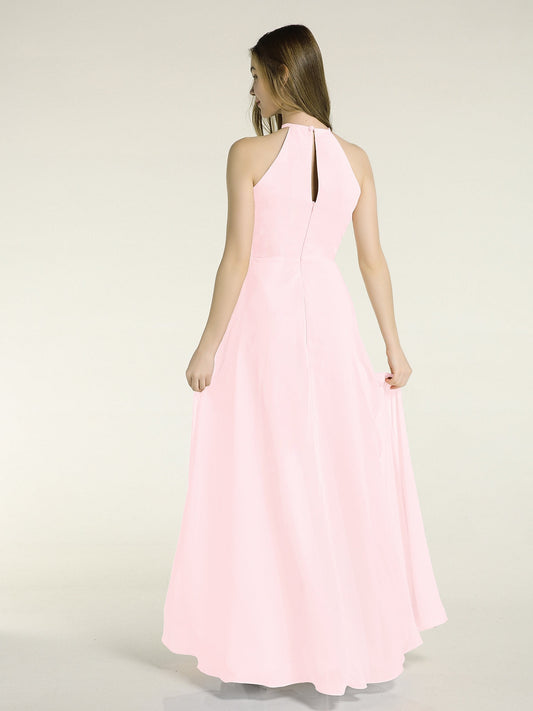 Babaroni TheraVestidos largos de dama de honor estilo halter de chiffon con espalda baja Rosa Claro