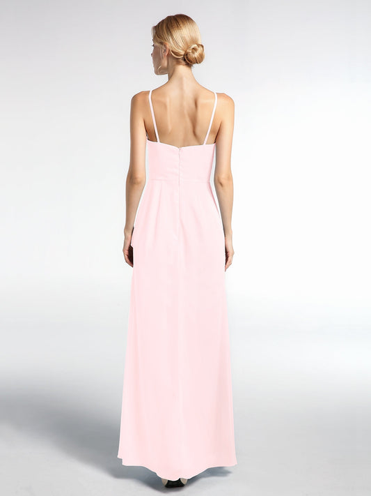 Babaroni NatalieVestido maxi simple de chiffon con escote en V y tirantes finos Rosa Claro