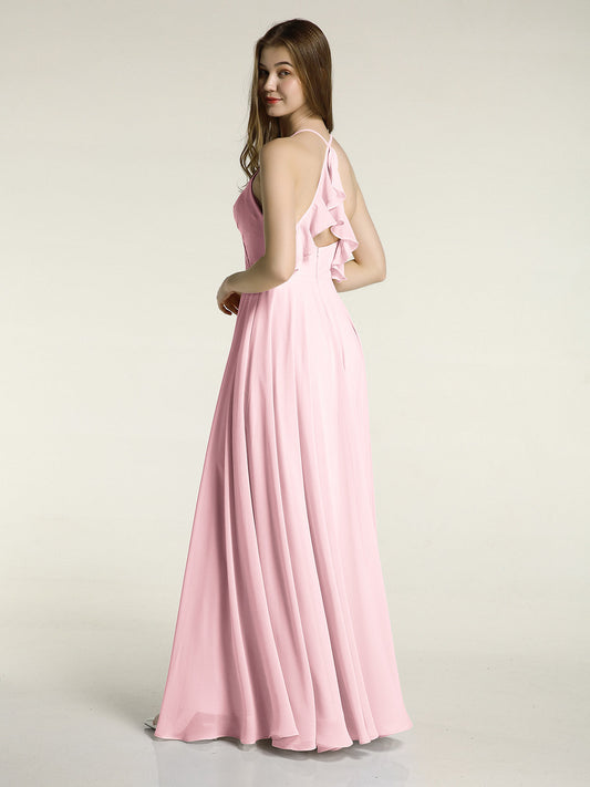 Babaroni MiriamVestidos largos de dama de honor estilo halter de chiffon Rosa Claro