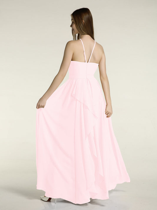 Babaroni FannyFanny Cabestro Largo Gasa Vestido De Dama De Honor Rosa Claro